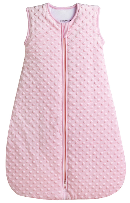 Made of a fashionable rose Minky Dot fabric, the sleeping bag has a super-soft quilted jersey inner lining and a front zipper design that makes dressing and diaper changes a snap! Armholes adjust with snaps for optimal fit. One of the softest fabrics we've ever touched. Minky is sure to delight your pampered baby. Offered in sizes small, medium and large. Click here to view our sizing chart.